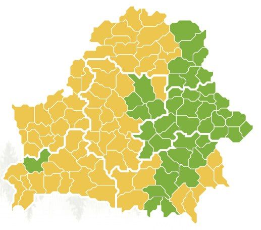 Ограничения также действуют в большинстве районов Брестской, Минской и Витебской областей. Полностью свободными для посещения на данный момент остаются только леса Могилевской области.